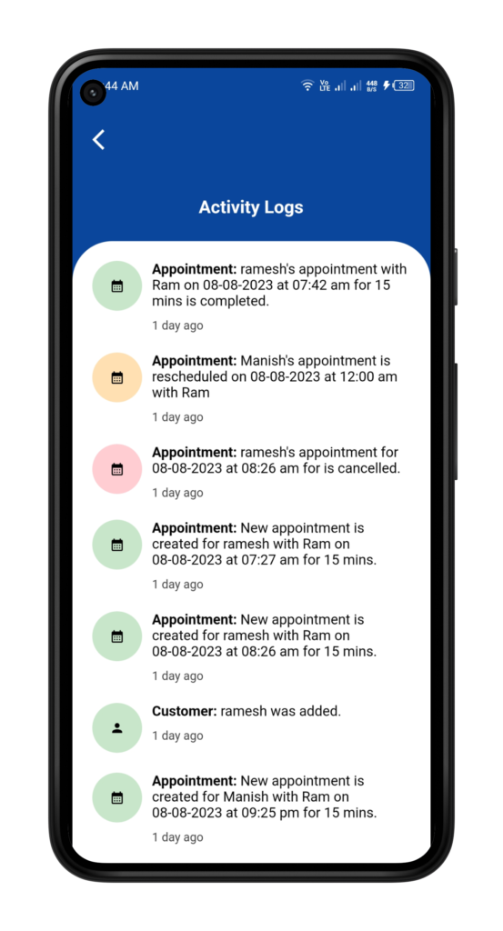 The Personalized Dashboard in our appointment app is your customised control centre for managing all your appointments and schedules.